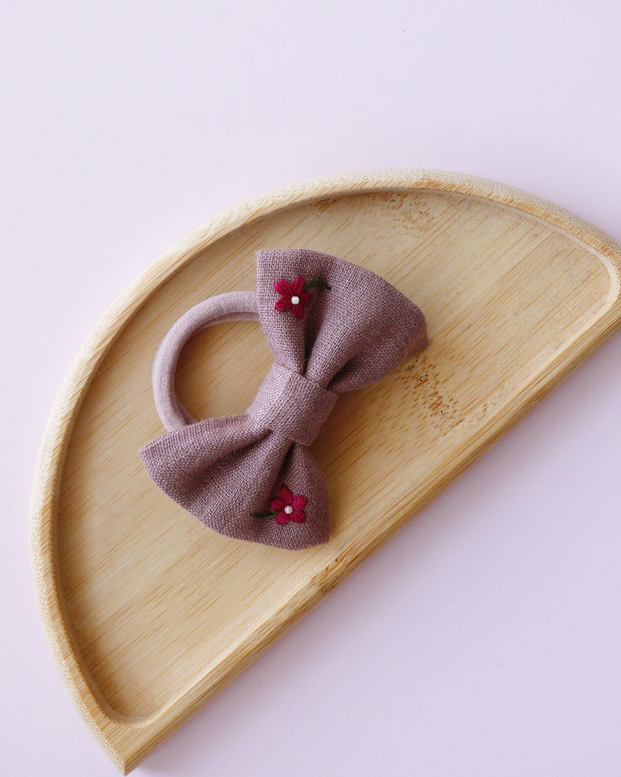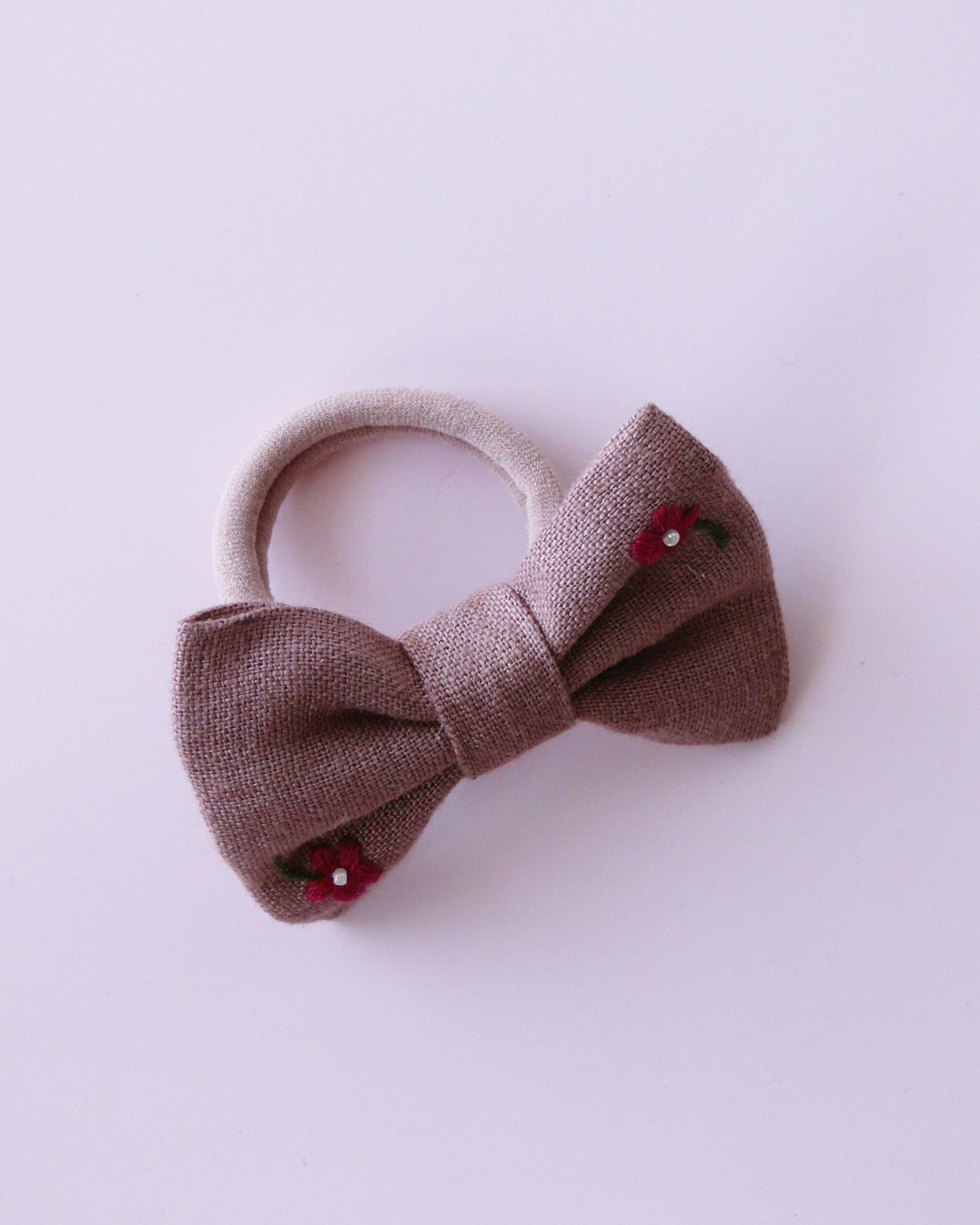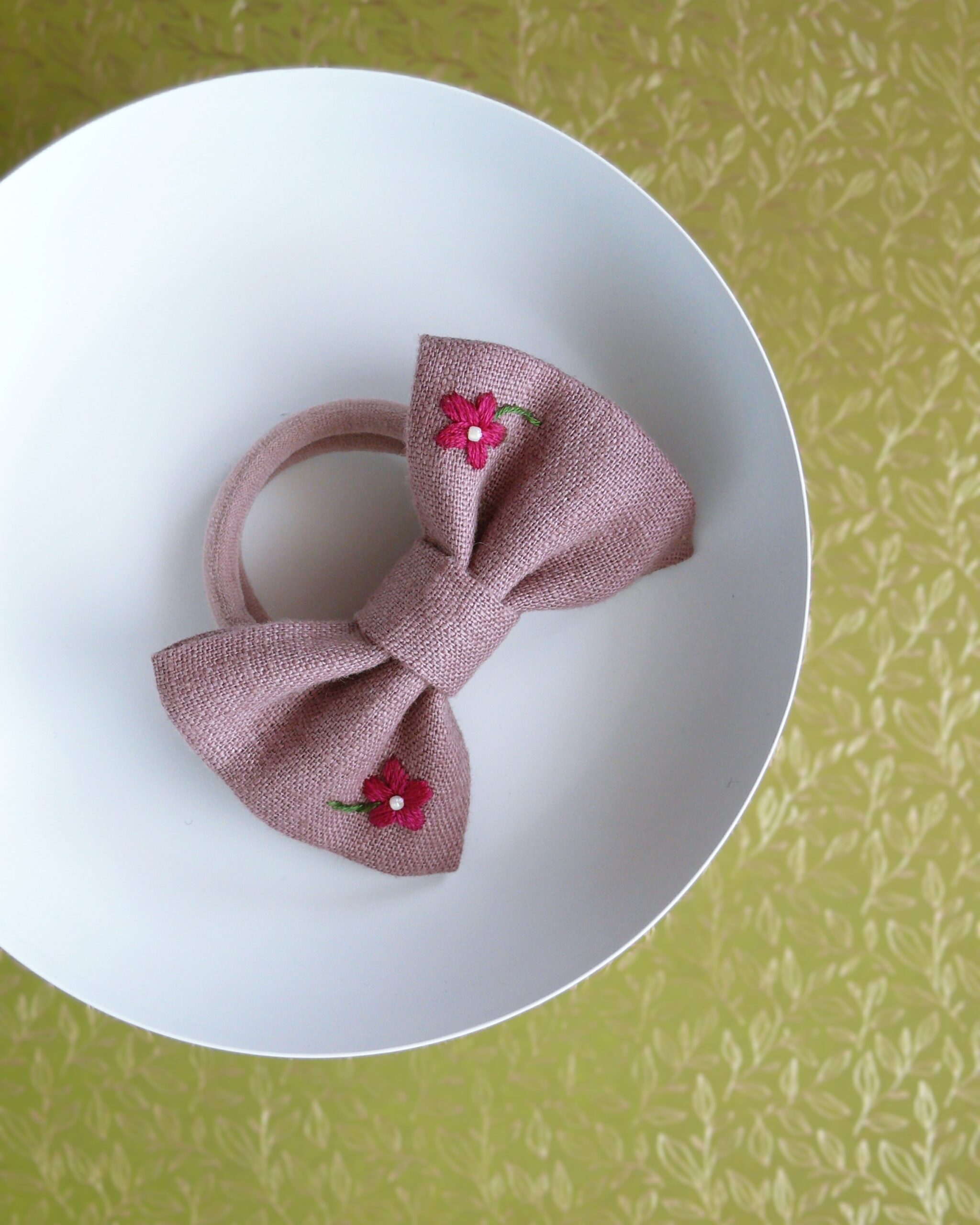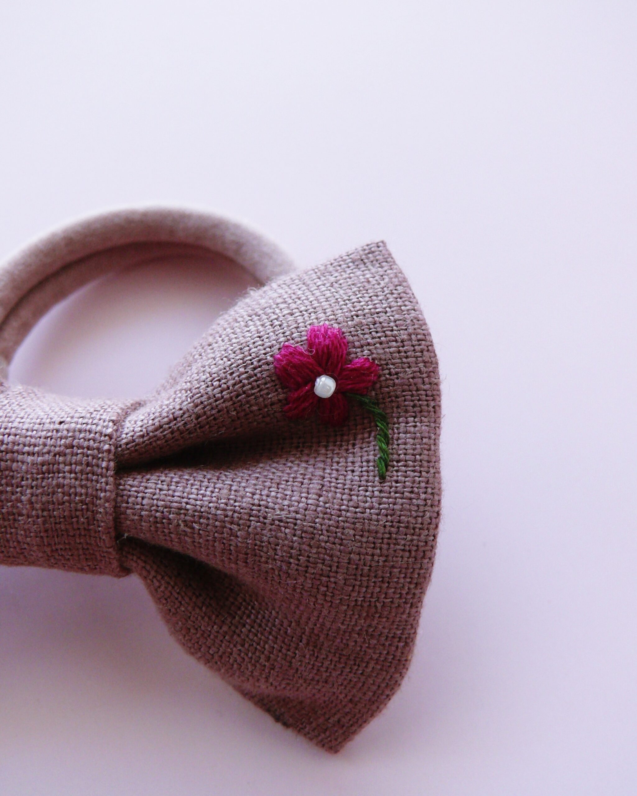 Gumka do włosów z lnianą kokardką z haftem jest dla Ciebie, jeżeli zależy Ci na naturalnych dodatkach do włosów z certyfikowanego materiału. To ozdoba, którą możesz nosić codziennie przez lata.