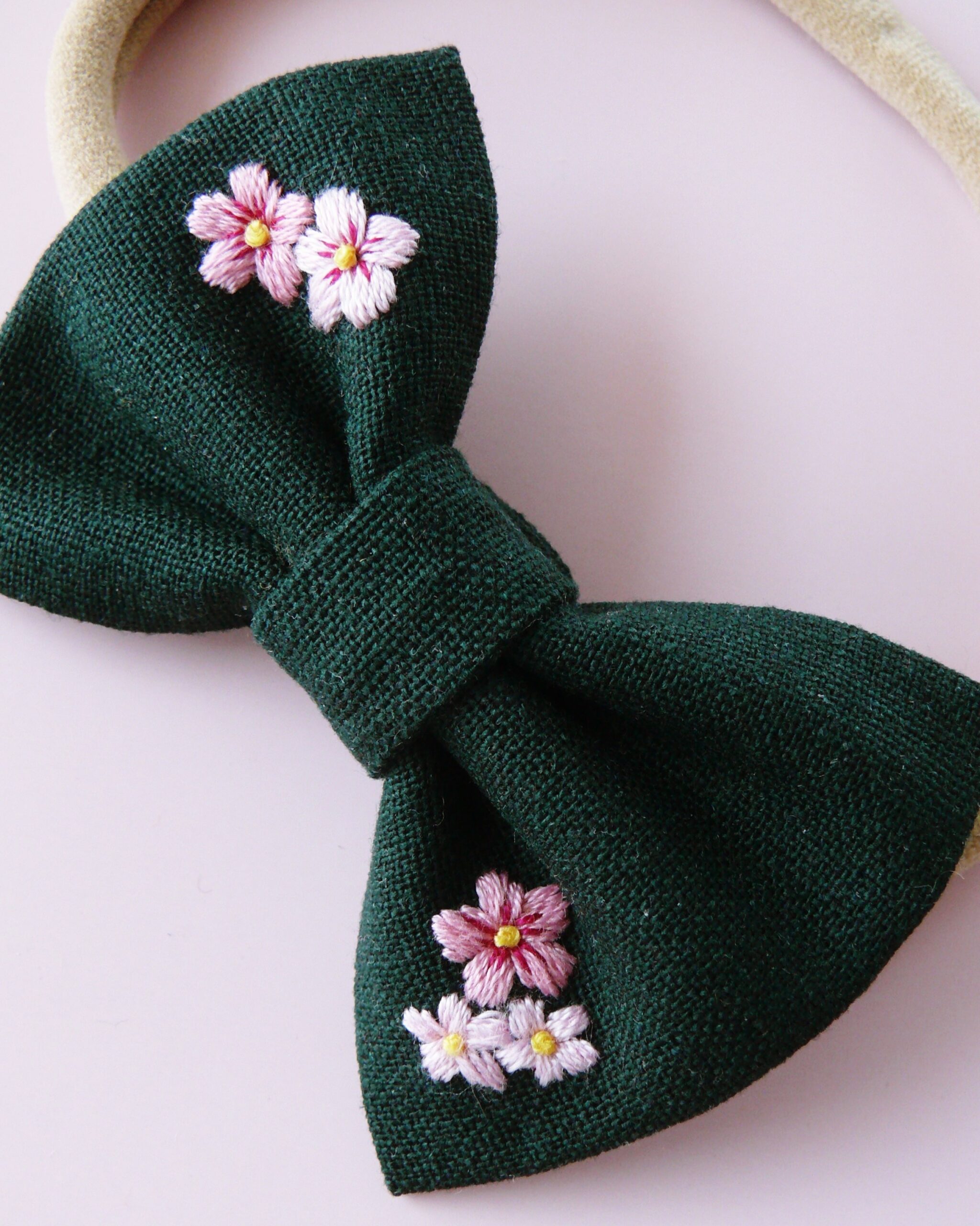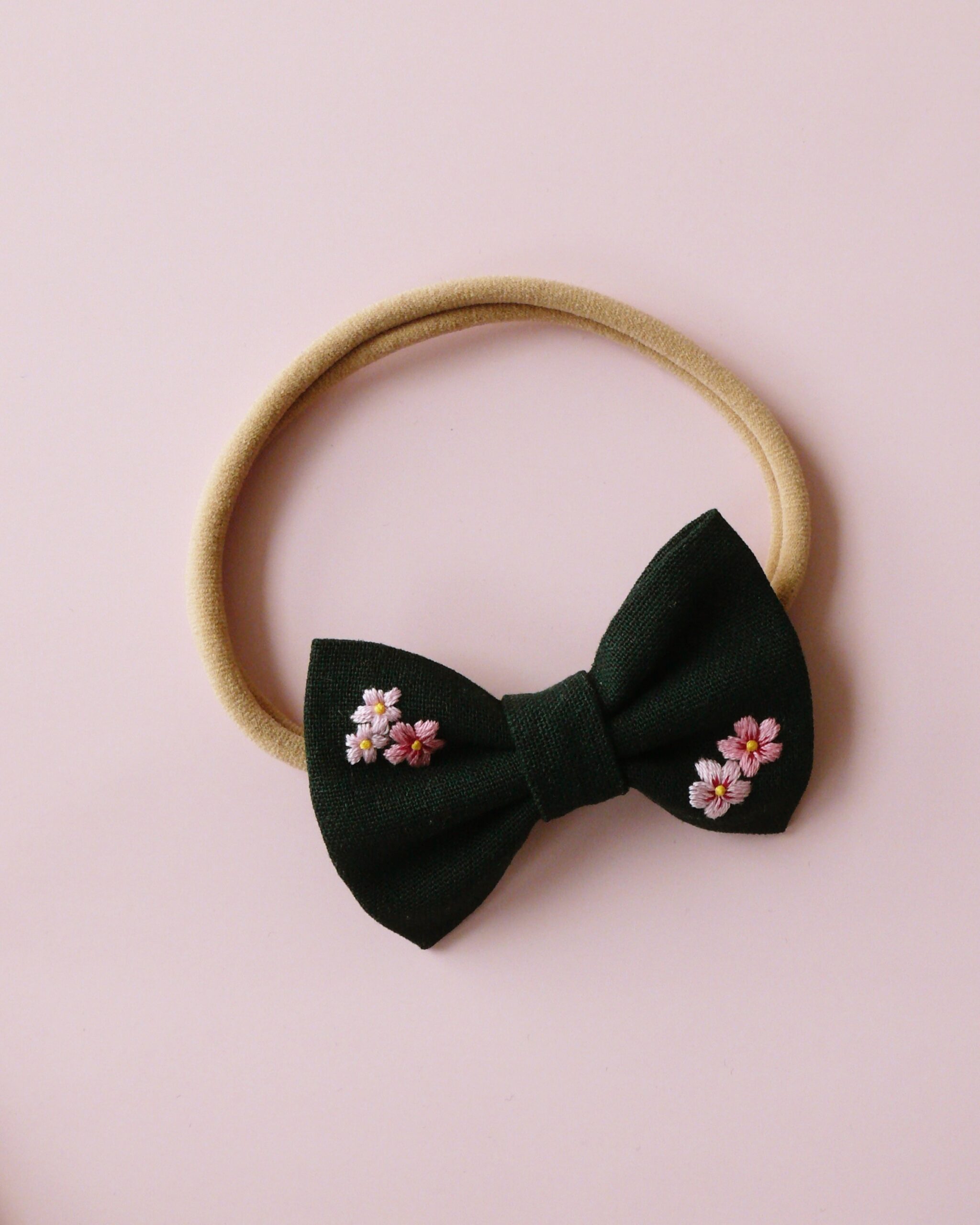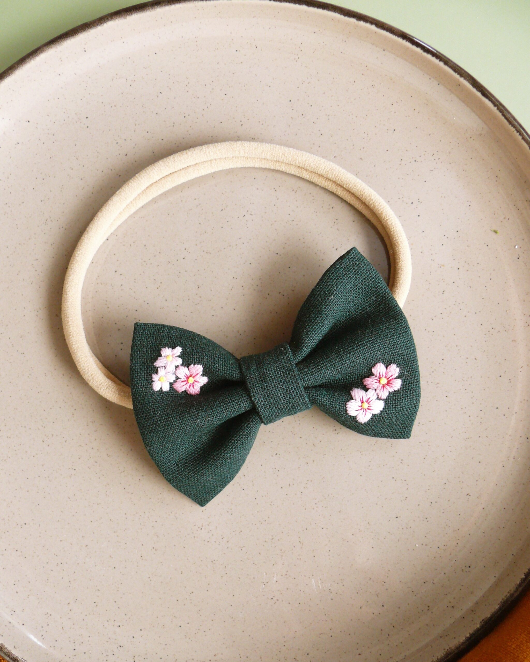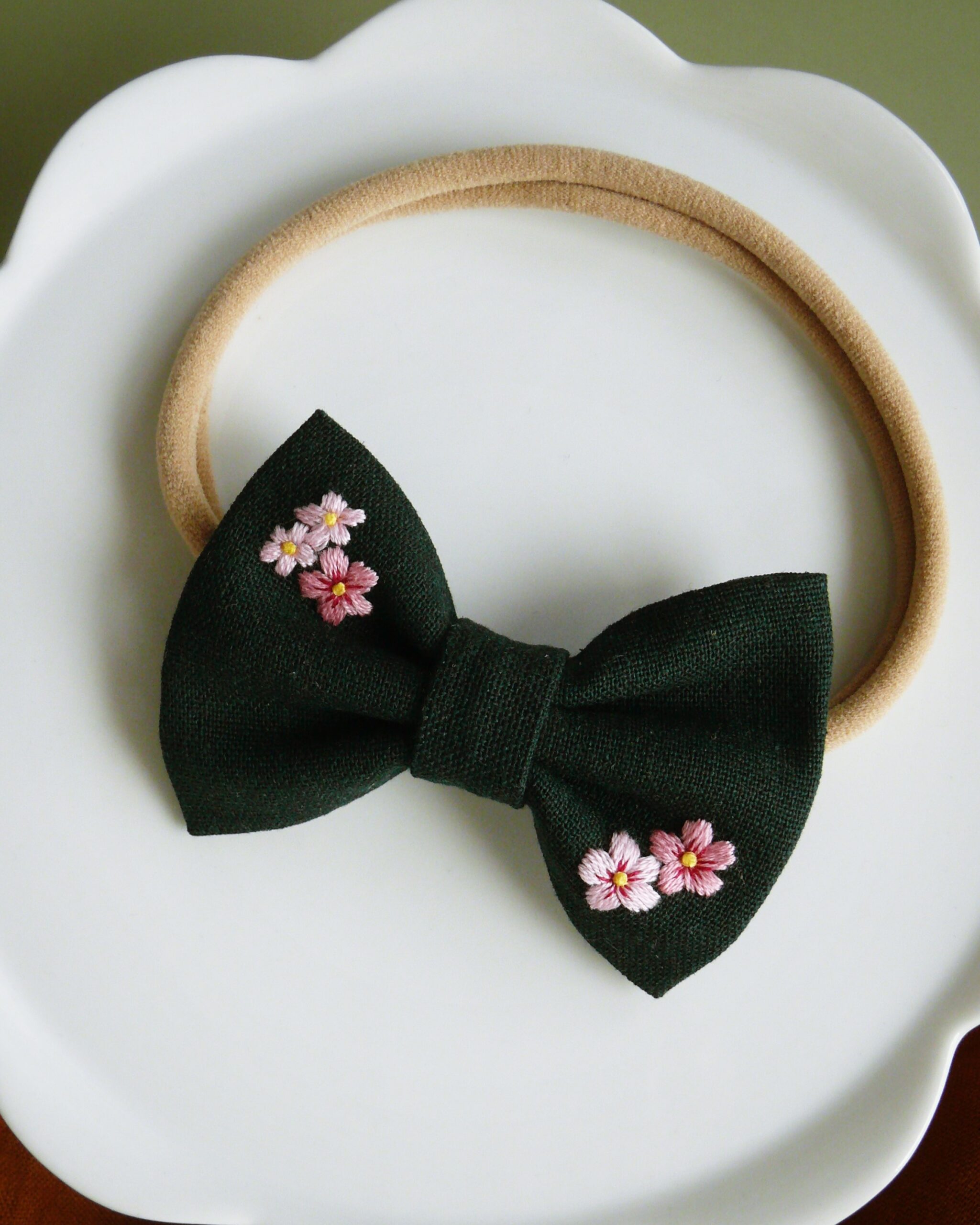 - ręczny haft — każdą kokardę haftuję ręcznie, dlatego wzór jest precyzyjny i trwały.