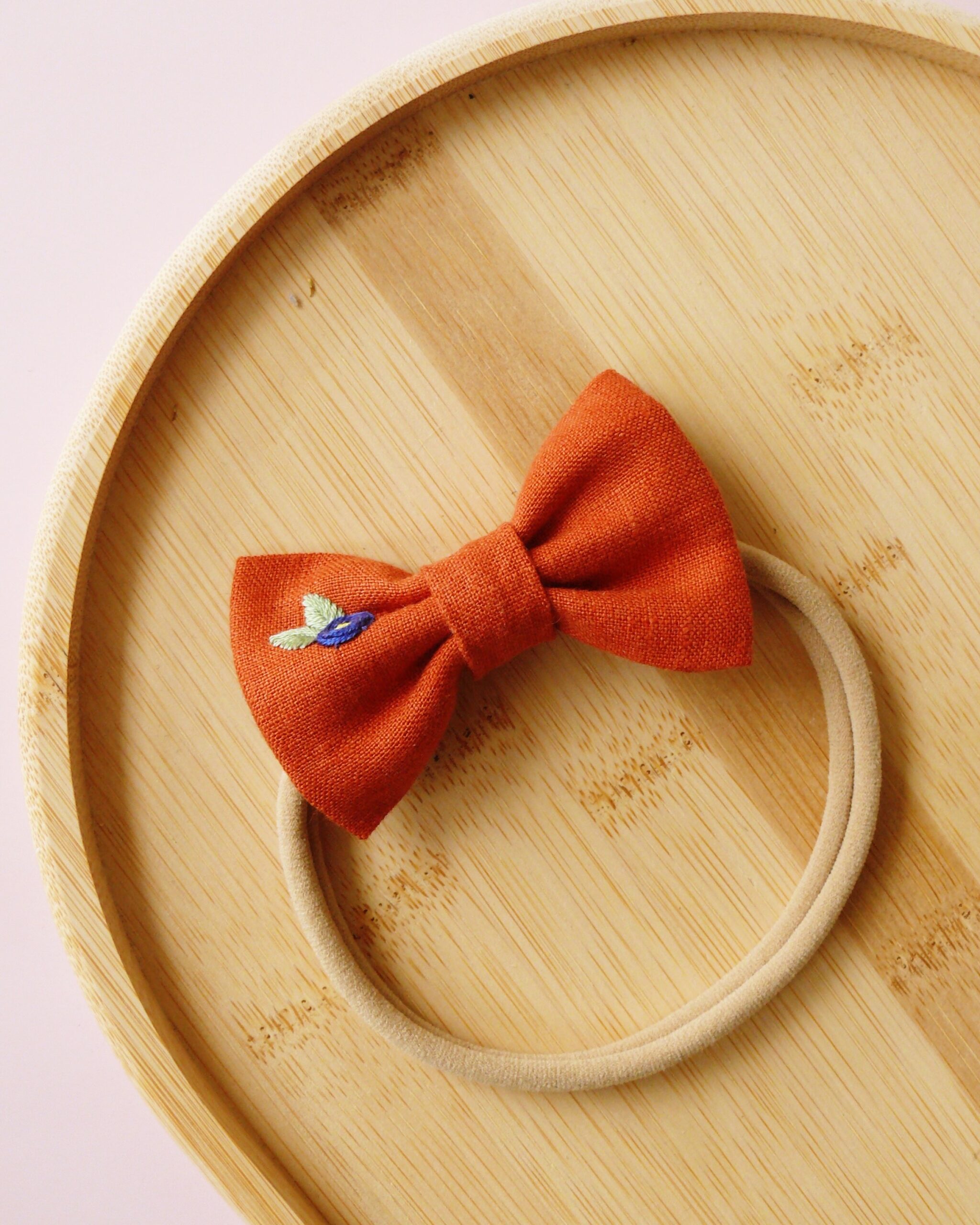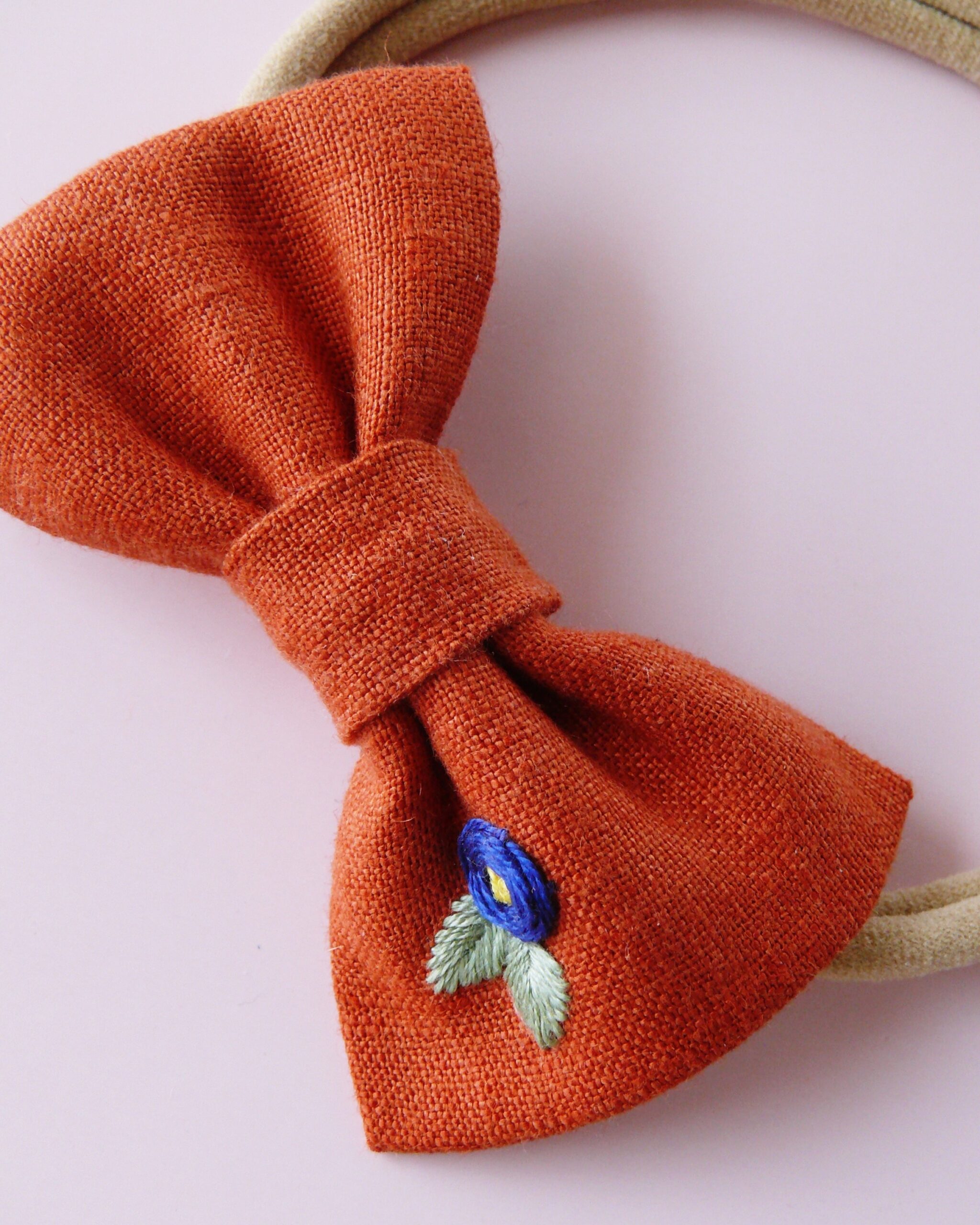 - ręczny haft — każdą kokardę haftuję ręcznie, dlatego wzór jest precyzyjny i trwały.