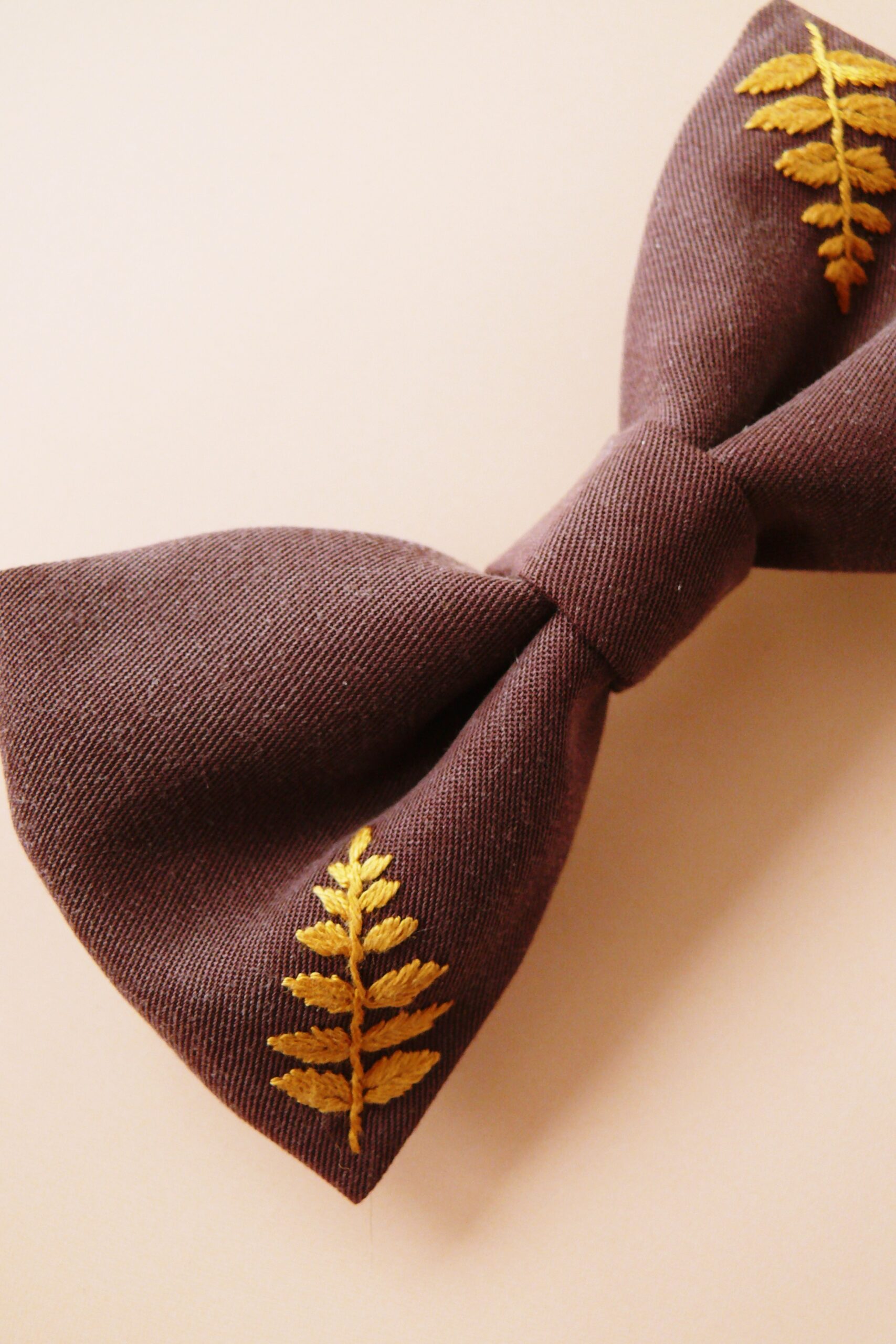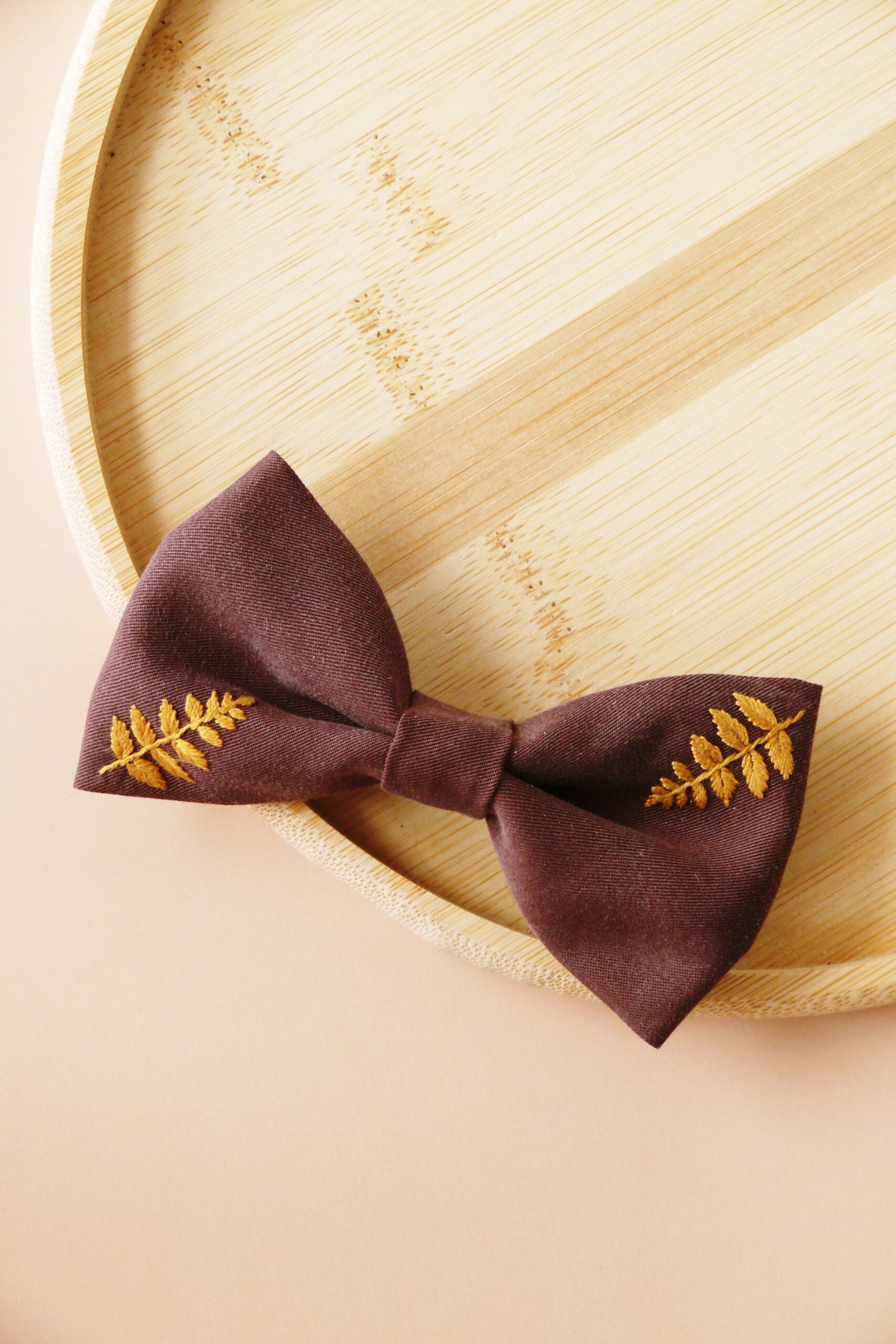 Spinka z kokardą z tencelu to ręcznie haftowany dodatek do upięć włosów z materiału naturalnego pochodzenia w kolorze gorzkiej czekolady.