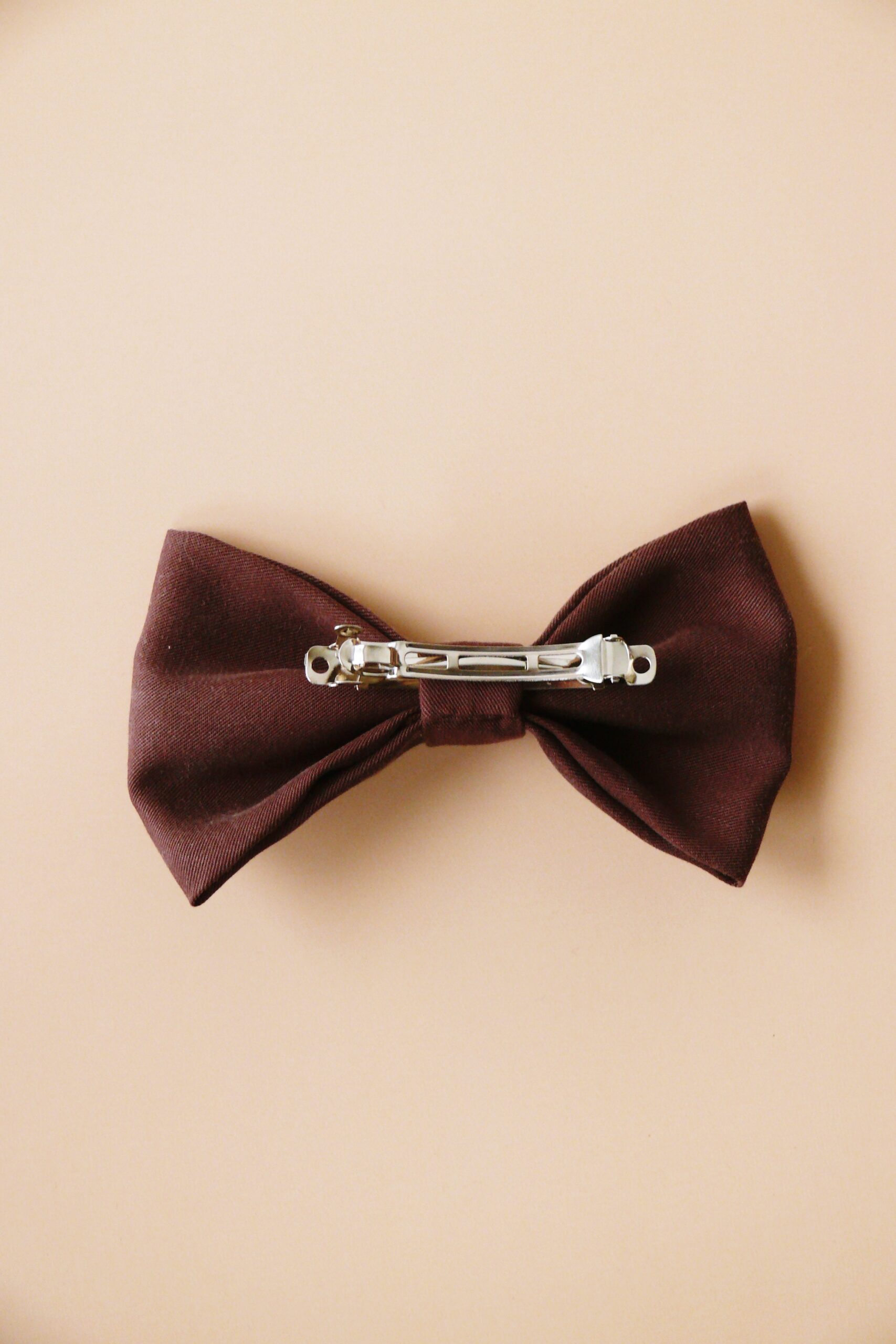 Spinka do włosów z kokardą z tencelu w kolorze gorzkiej czekolady